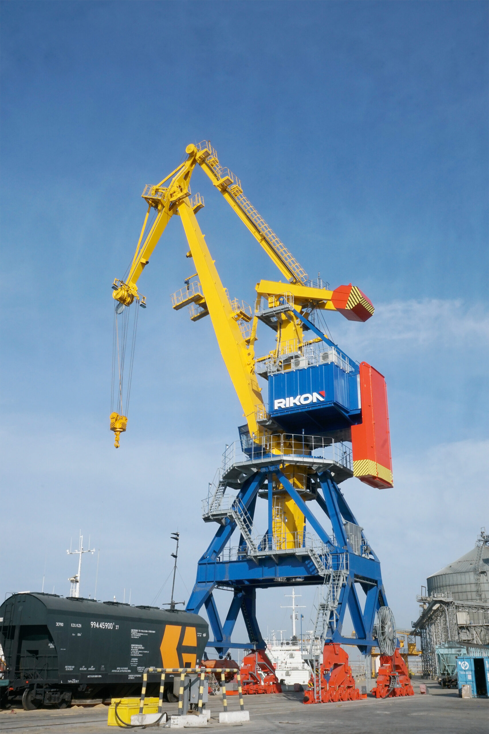 JSC “RIKON” has successfully completed the installation of the RPS-1600 portal crane at the national port of Aktau. This advanced double jib level luffing crane with a maximum lifting capacity of 63 tons and outreach up to 32 meters, is set to significantly improve the port’s operational efficiency by handling a variety of cargo, including containers and bulk materials.